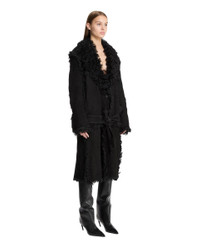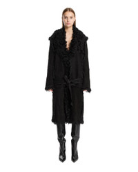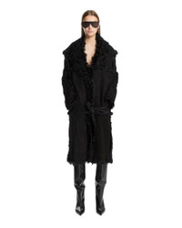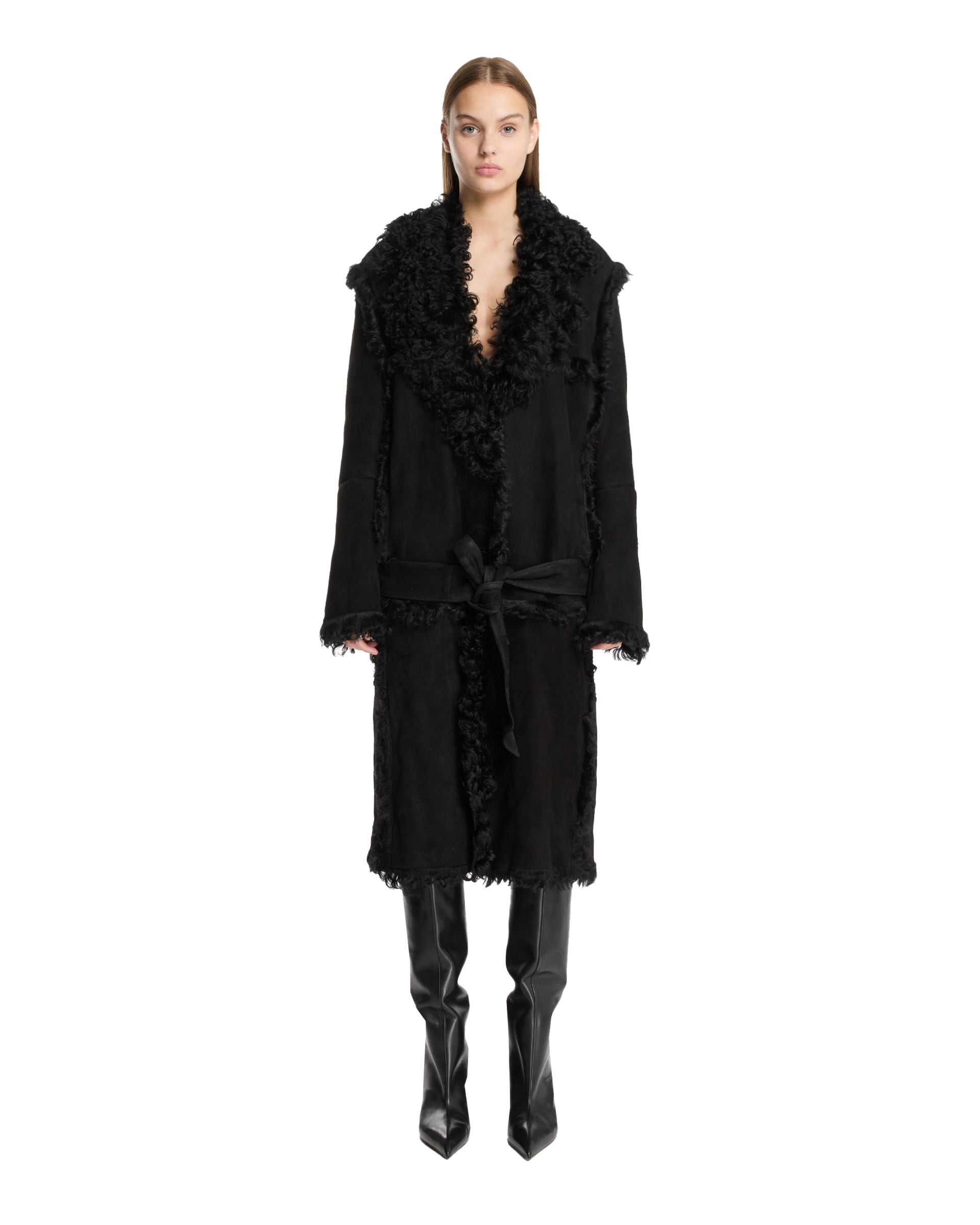 The Attico Black Long Shearling Coat. Black shearling leather, long sleeves, shawl lapel, front button closure. Detachable tone-on-tone belt at the waist. Oversized fit. Perla is 176 cm and she is wearing size 40. DETAILS Model: 251WCC00086LBT136AA100 Composition: 100% Leather Made in: ROMANIA Season: FW25-26