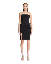 The Attico Black Midi Dress. Black stretch wool gabardine, sleeveless, midi skirt with side slit and wrapped draped construction, silver-tone hardware. Side zip closure, regular fit. Perla is 176 cm and she is wearing size 40. DETAILS Model: 251WCW00250WWW061AA100 Composition: 98% Virgin Wool, 2% Elastane; Detail: 100% Brass Made in: ITALY Season: FW25-26