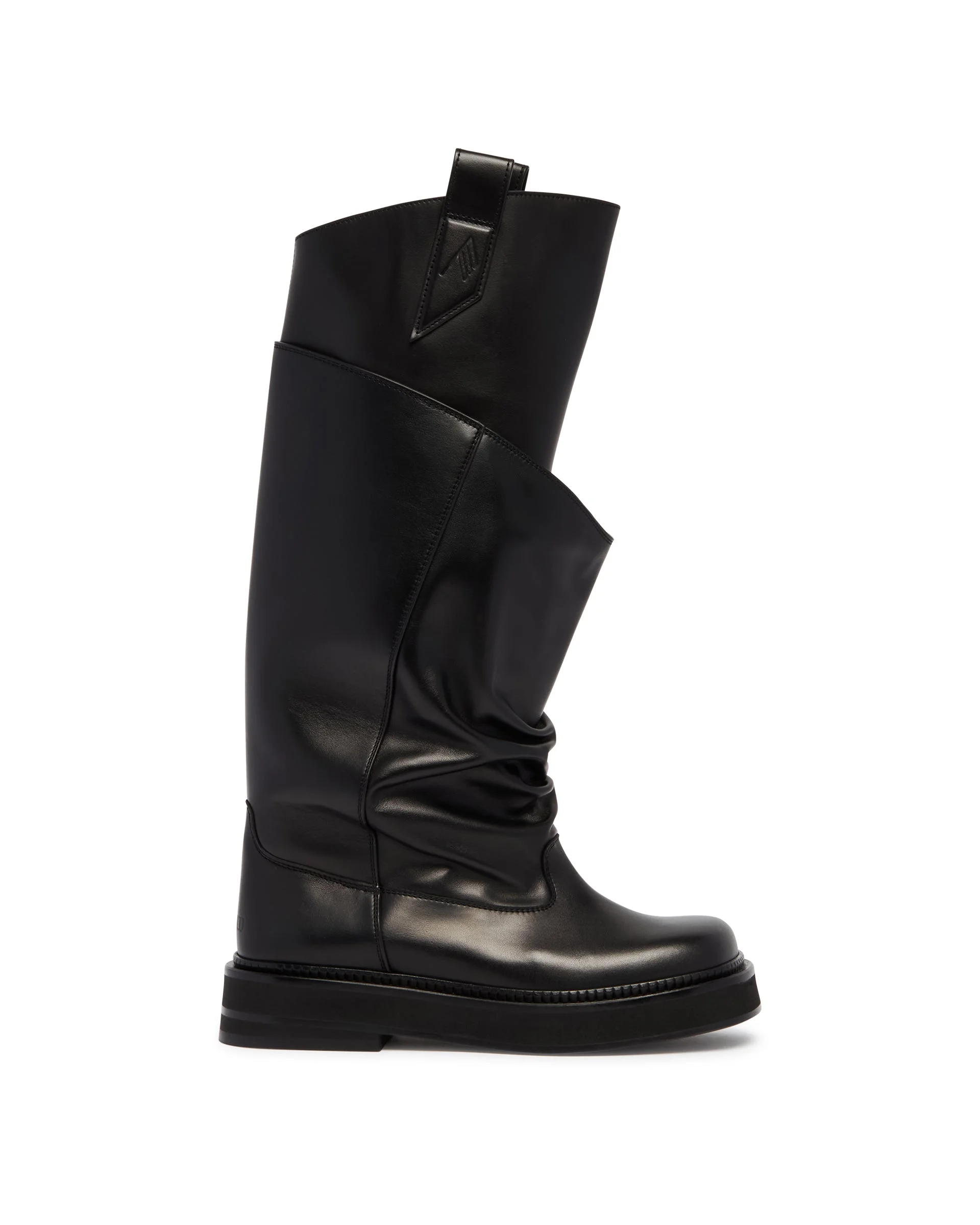 The Attico Black New Robin Passeggiata Combat Boots. Black leather upper, two-layer design with pleats on the shaft. Rounded toe, rubber sole, leather lining. Slip-on fit. DETAILS Model: 260WSH00902LBT019AA100 Composition: 100% Leather Made in: ITALY Season: SS26
