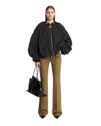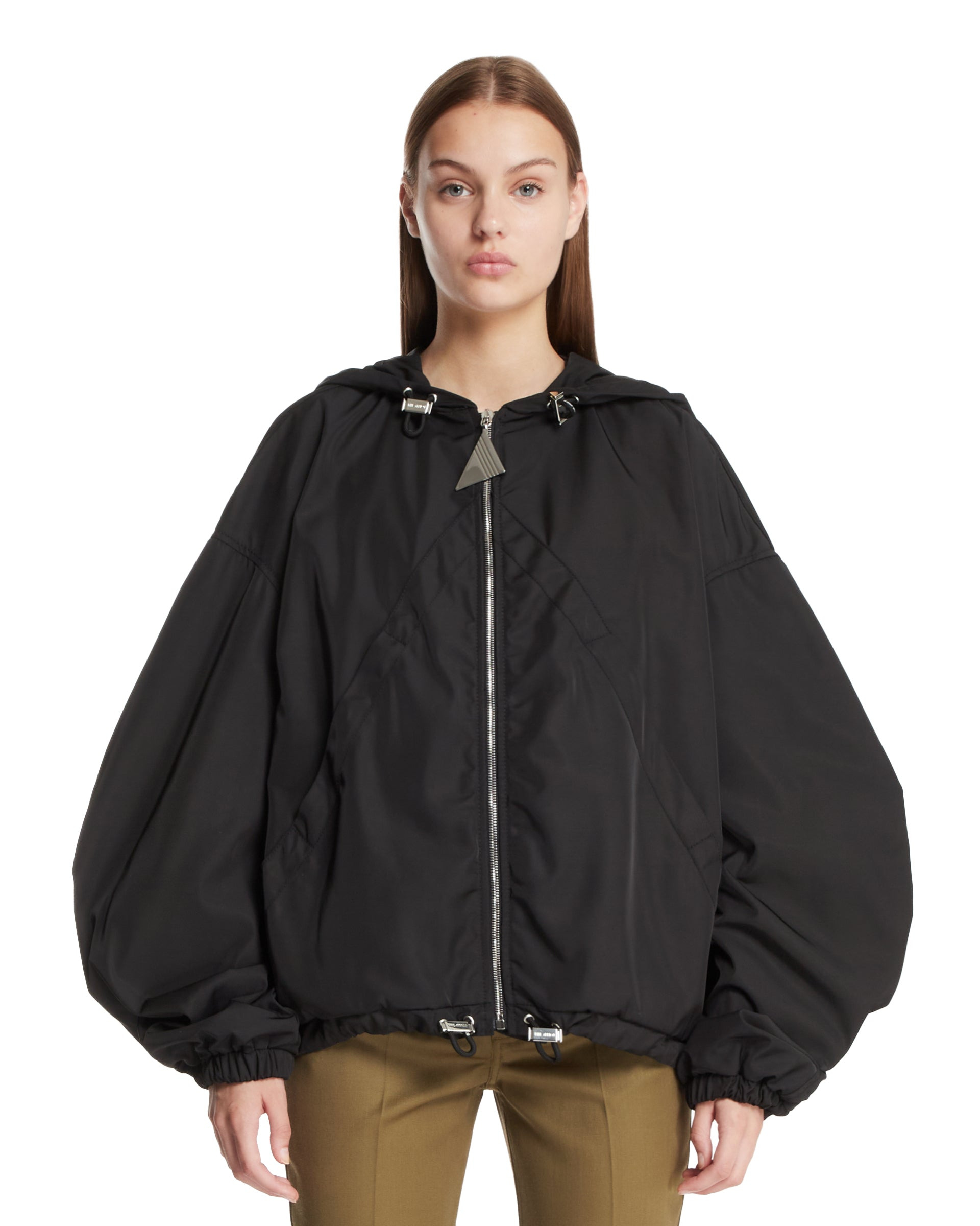 The Attico Black Nylon Bomber. Black nylon, viscose lining, integrated hood with drawstring, long sleeves, front zipper closure. Dropped shoulders, diagonal side pockets, elastic cuffs and hem, tone-on-tone stitching. Oversized fit. Perla is 176 cm and she is wearing size 38. DETAILS Model: 251WCB00076PLL001AA100 Composition: 100% Polyamide; Lining: 100% Viscose; Details: 100% Brass Made in: ROMANIA Season: FW25-26
