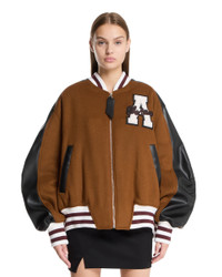 The Attico Camel Wool Cloth Bomber Jacket. Camel wool blend and black faux leather, contrasting elasticated cuffs, collar and hem. Front zip closure, long wide sleeves, dropped shoulder design. Side pockets, logo on the chest and on the back of the garment. Oversized fit, lined. Perla is 176 cm and she is wearing size 40. DETAILS Model: 251WCB00092WWV058AA046 Composition: 75% Virgin Wool, 25% Polyester; Details: 47% Virgin Wool, 47% Acrylic, 7% Nylon Made in: ITALY Season: FW25-26