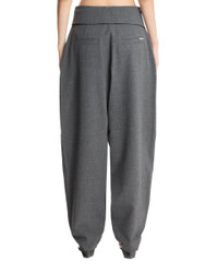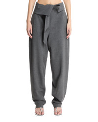 The Attico Gray Harem Pants. Gray viscose blend, high waist construction with rigid band and tone-on-tone knotted belt. Tapered leg, low crotch, four-pocket style, viscose lining, relaxed fit. Anna is 178 cm and she is wearing size 40. DETAILS Model: 251WCP00272PLL007AA084 Composition: 68% Polyester, 29% Viscose, 3% Elastane; Lining: 100% Viscose Made in: ITALY Season: FW25-26