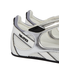 The Attico Silver and White Flat Floor 01 Ballerinas. Silver and white leather and synthetic fabric, round toe, adjustable crisscross double straps, rubber sole with logo detail. DETAILS Model: 250WSH00871MIX024AA002 Composition: 50% Fabric, 50% Leather; Sole: 100% Rubber Made in: ITALY Season: FW25-26