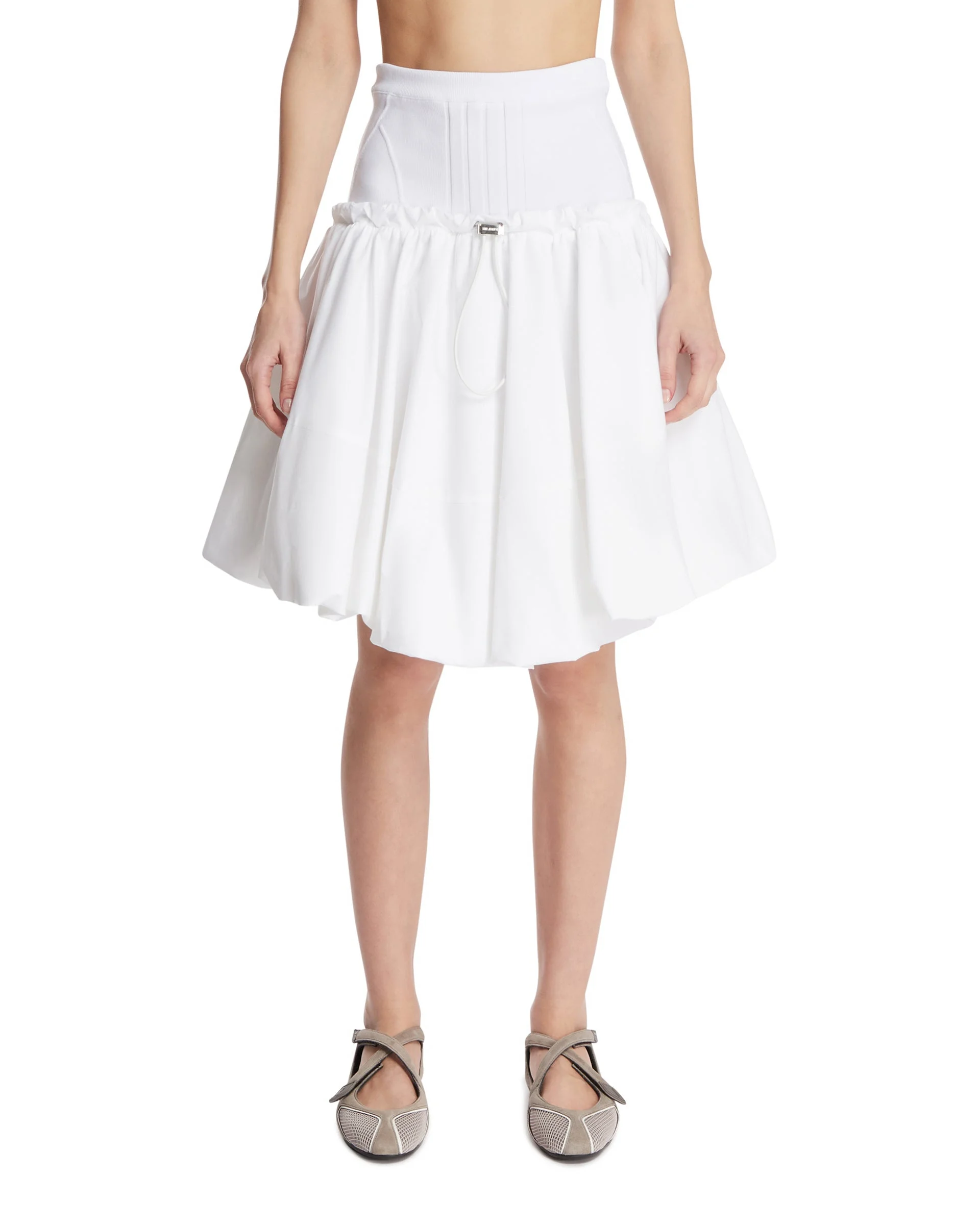 The Attico White Balloon Skirt. White technical fabric and cotton, layered design, drawstring waist with a high fitted band, pleated balloon silhouette, regular fit. Daniele is 178 cm and she is wearing a size 40. DETAILS Model: 260WCS00288CCE002AA001 Composition: Fabric 1: 97% Cotton, 3% Elastane; Fabric 2: 95% Polyamide, 5% Elastane Made in: ITALY Season: SS26