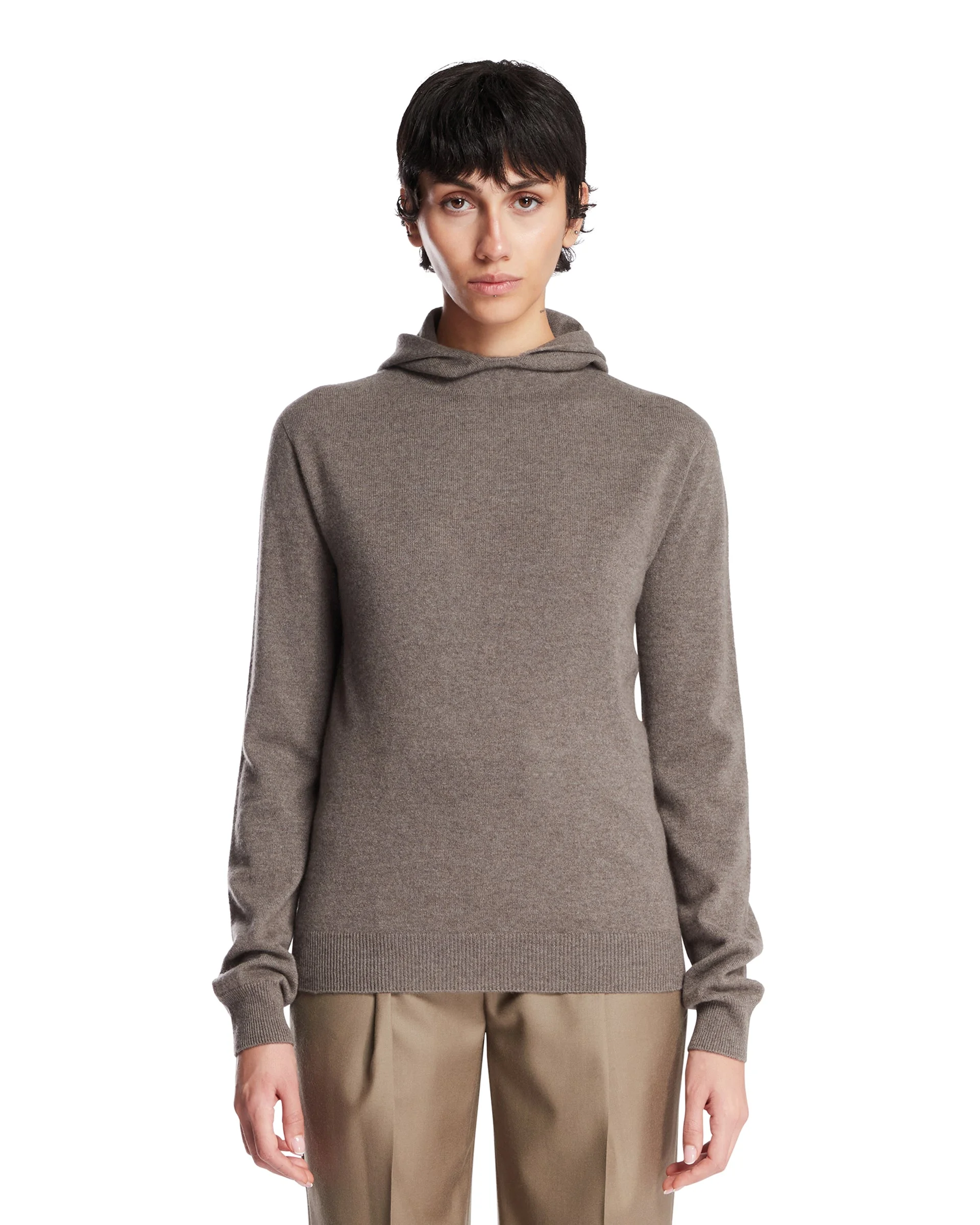 The Row Beige Cashmere Hooded Sweater. Beige cashmere, tone-on-tone hood, long sleeves, straight ribbed hem, regular fit. Anis is 178 cm and she is wearing size S. DETAILS Model: 10395Y556BNS Composition: 100% Cashmere Made in: ITALY Season: FW25-26