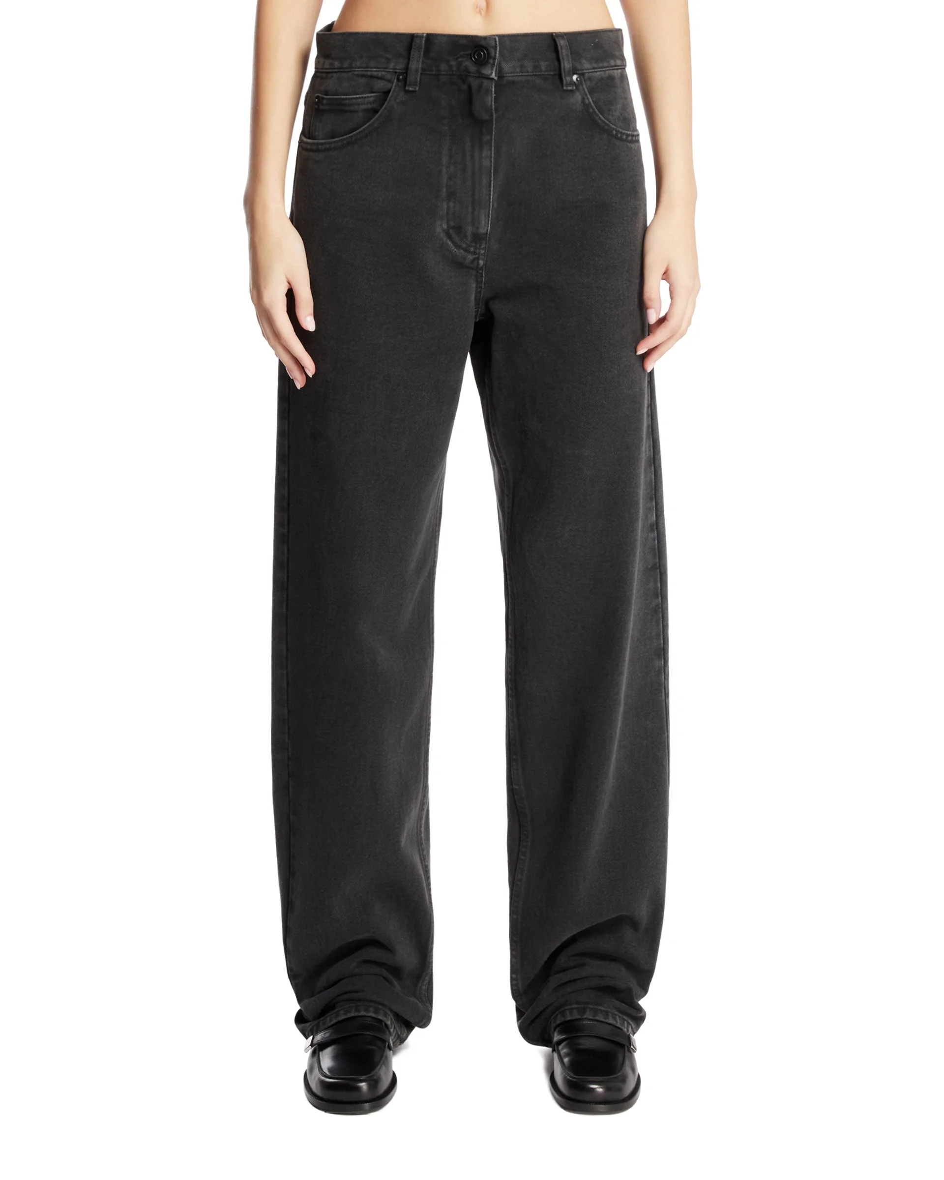The Row Black Clair Cotton Jeans. Slightly faded black cotton, high waist, straight leg, classic 5-pocket design. Regular fit. Perla is 176 cm and she is wearing size 26. DETAILS Model: 10130W4171FBK Composition: 100% Cotton Made in: ITALY Season: FW25-26