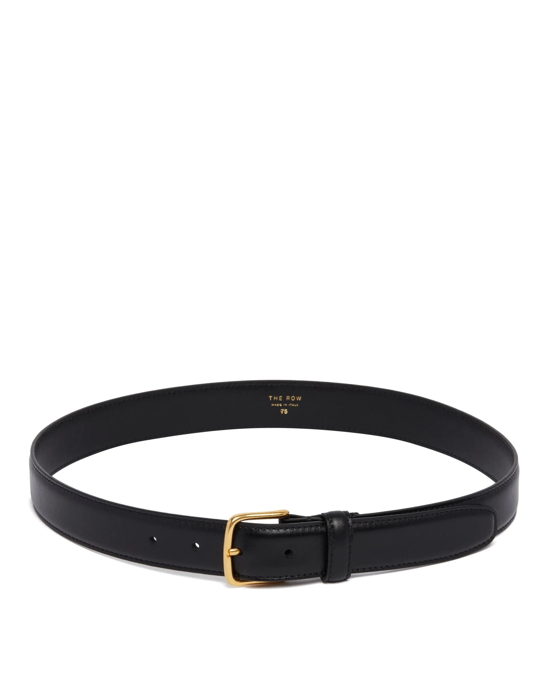The Row Black Classic Leather Belt. Black leather, metal buckle, fixed loop, gold-tone hardware. DETAILS Model: W1283L60BAG Composition: 100% Leather; Details: 100% Brass Made in: ITALY Season: FW25-26