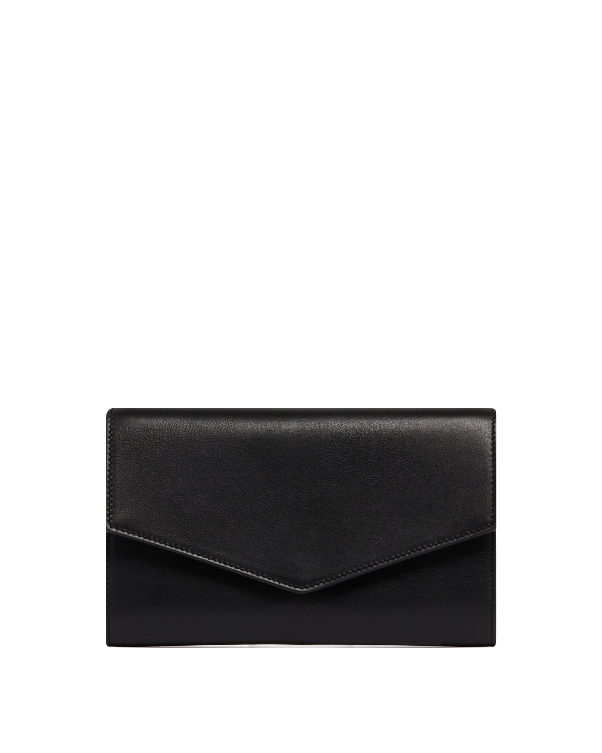 The Row Black Envelope Bag. Crafted in pure black leather. Detachable and adjustable shoulder strap, envelope-shaped, magnetic fastening, embossed logo on the inside, golden-toned hardware, lined. Size (cm): 19X10X2 DETAILS Model: W1600L114BLSG Composition: 100% Leather Made in: ITALY Season: FW23-24