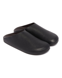 The Row Black Hudson Leather Sandals. Black leather upper, rounded toe, contoured footbed, rubber sole. Slip-on style. DETAILS Model: F2118L636BLK Composition: Upper: 100% Leather; Sole: 100% Rubber Made in: ITALY Season: FW25-26