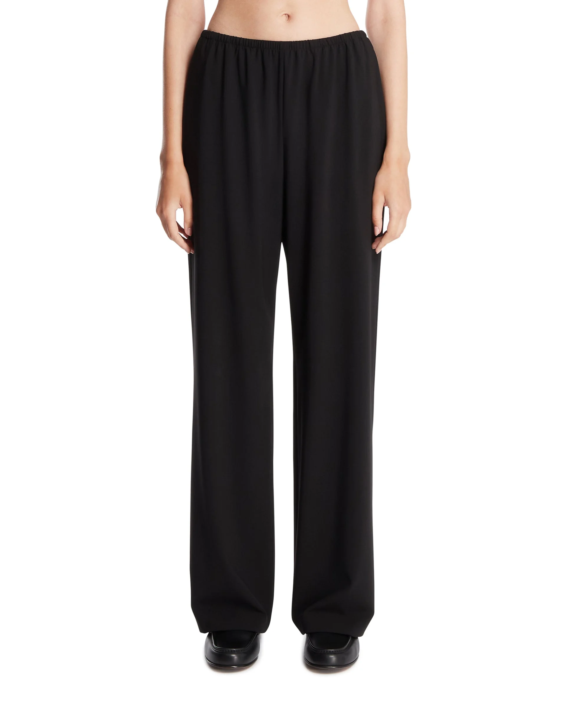 The Row Black Seraphim Wool Pants. Black wool, straight-leg cut, slanted side pockets, elasticated waistband with subtle gathering. Regular fit. Kate is 179 cm and she is wearing size 4. DETAILS Model: 10132W4061BLK Composition: 96% Wool, 4% Elastane; Lining: 100%Msilk Made in: ITALY Season: FW25-26