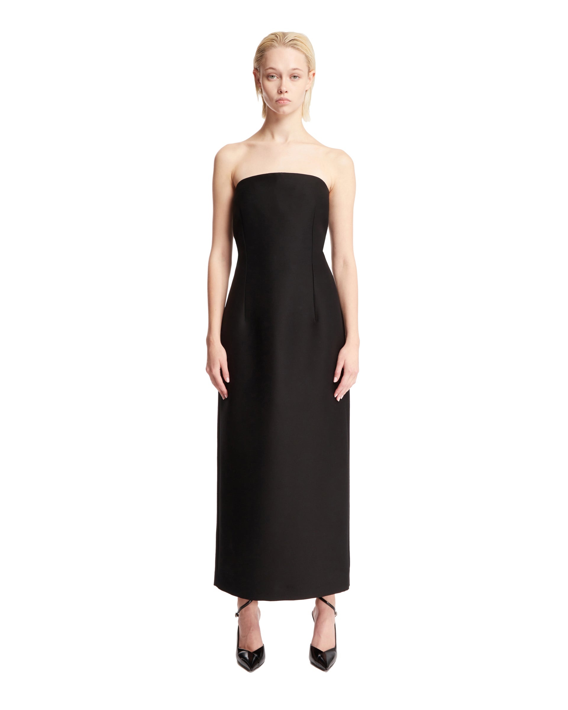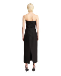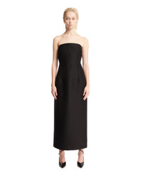 The Row Black Ward Dress. Crafted in a black virgin wool and silk blend. Straight neckline, strapless, fitted waistline, back slit, invisibile back zip fastening, straight hem, silk lining. Greeta is 172 cm and she is wearing size 4. DETAILS Model: 8168W2615BLK Composition: 82% Virgin Wool, 18% Silk; Lining: 100% Silk Made in: ITALY Season: SS24