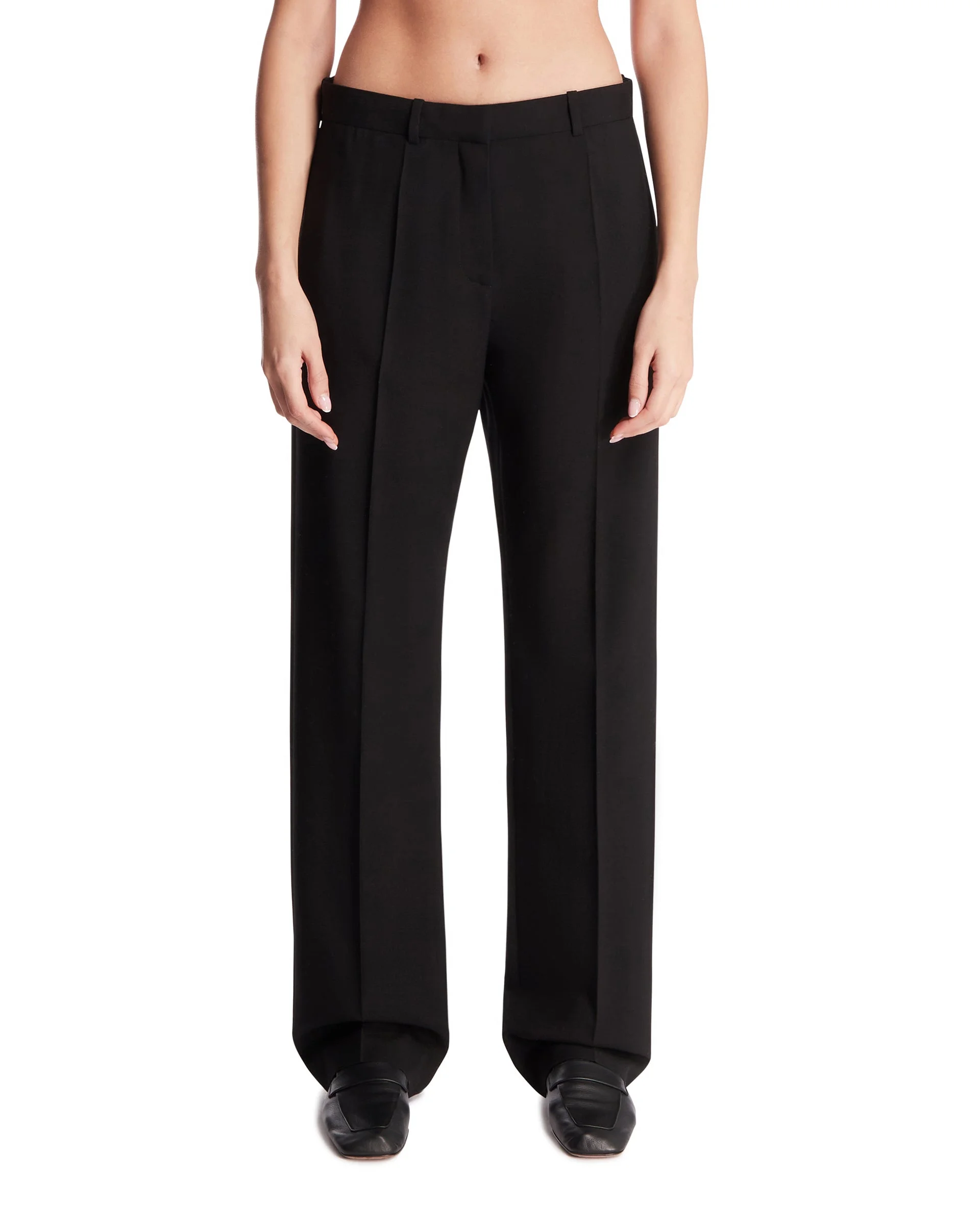 The Row Black Wool Pants. Black wool, regular waist, belt loops, hidden front closure. Straight leg with central crease, three-pocket design, regular fit. Anis is 178 cm and she is wearing size 4. DETAILS Model: 10609W4220BLK Composition: 100% Wool; Lining: 100% Silk Made in: ITALY Season: FW25-26