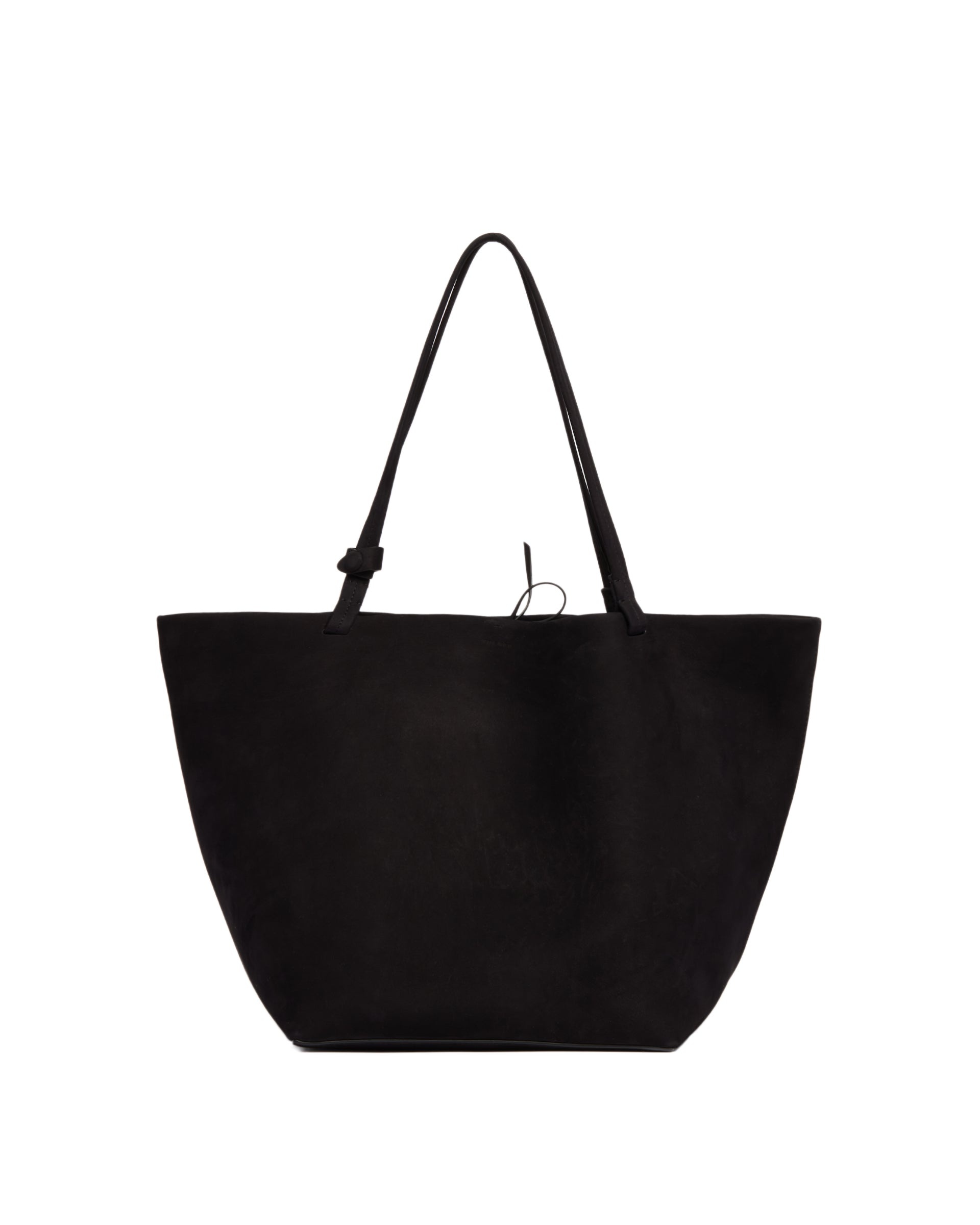 The Row Black XL Park Tote Three. Black nubuck suede leather, internal button closure, flat handles and adjustable shoulder strap. Leather lining. Size (cm): 45X30X26 DETAILS Model: W1272L81BLANS Composition: 100% Leather Made in: ITALY Season: FW24-25