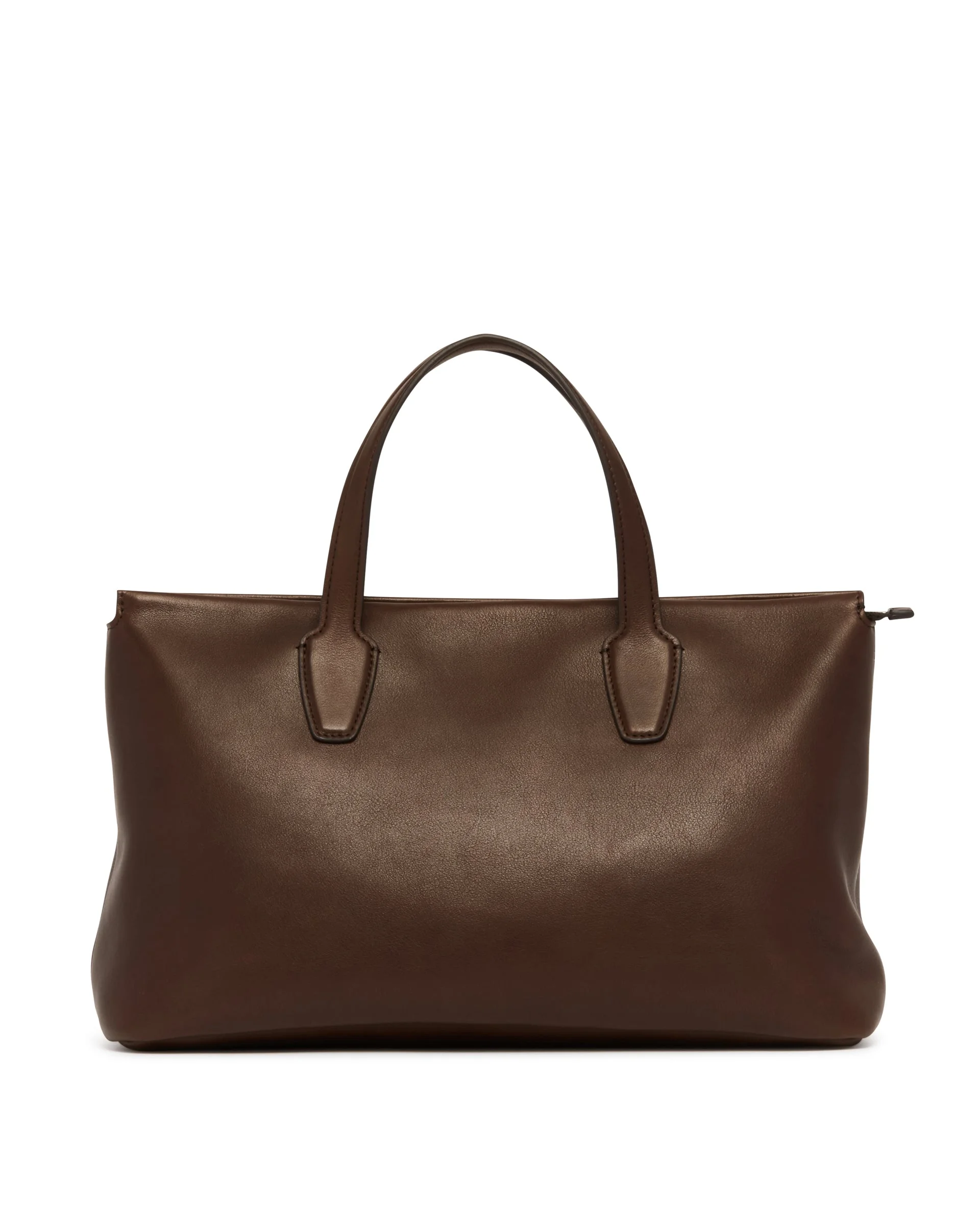 The Row Brown Marcel Bag in Leather. Brown leather, flat tone-on-tone handles, overlapping construction, concealed top zip closure. Structured silhouette lined in smooth nappa with a folded top edge. Finished with antique silver hardware and leather lining. Size (cm): 33X20X12 DETAILS Model: W1909L72DEOS Composition: 100% Leather; Detail: 100% Brass Made in: ITALY Season: FW25-26