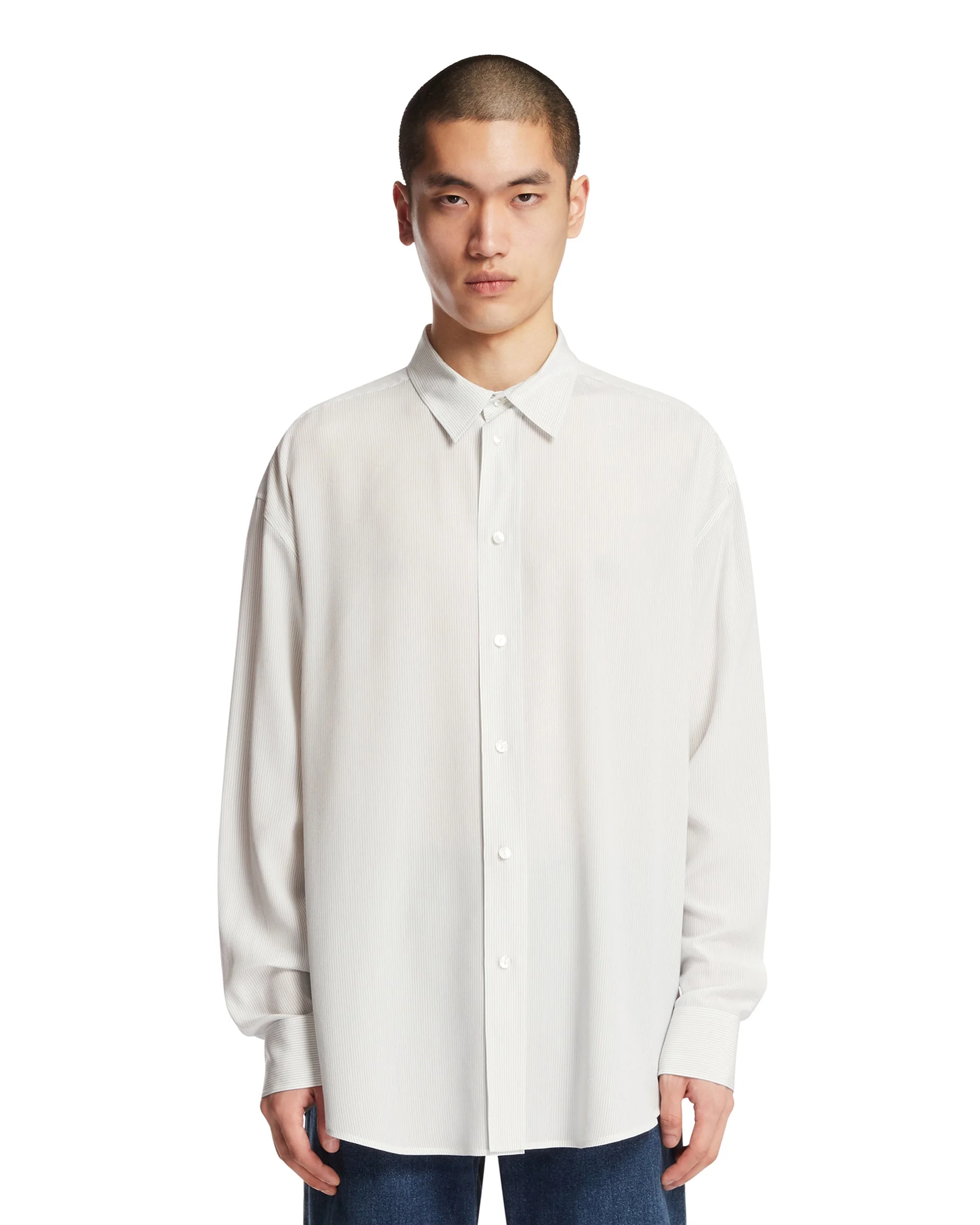 White Granada Striped Silk Shirt