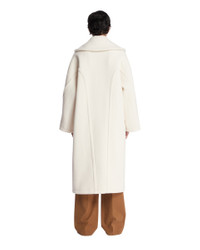 The Row White Regino Wool Coat. White wool, silk lining, oversized cocoon silhouette, sculptural collar, welt pockets, horn button closure. Anis is 178 cm and she is wearing size 4. DETAILS Model: 10513W4238IVR Composition: 100% Virgin Wool; Lining: 100% Silk Made in: ITALY Season: FW25-26