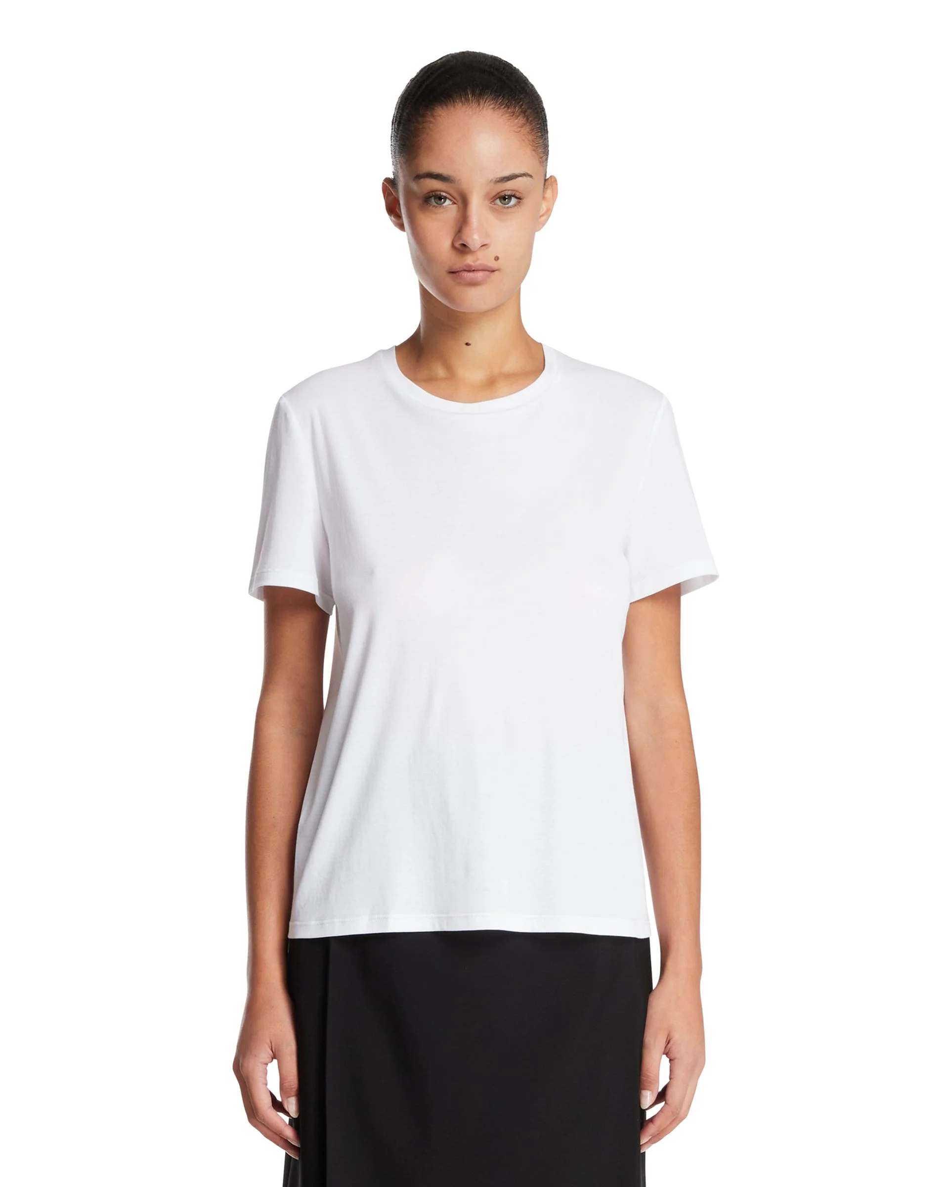 The Row White Wesler Cotton T-Shirt. White cotton, crew neck, short sleeves, straight hem, regular fit. Alicia is 174 cm and she is wearing size S. DETAILS Model: 852F911BWH Composition: 100% Cotton Made in: ITALY Season: FW25-26