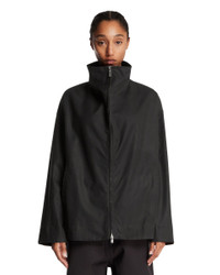 Toteme Black Velvet-Trimmed Jacket. Black cotton, corduroy-lined interior, high collar, long sleeves, front zip closure, two side pockets, asymmetric hem. Aline is 180 cm and she is wearing size 34. DETAILS Model: 254WRO0237FB0320263 Composition: 100% Cotton Made in: ROMANIA Season: SS26