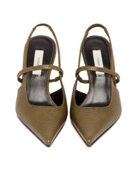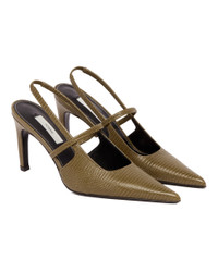 Toteme Green Leather Slingbacks. Green lizard-print leather upper, pointed toe, slingback design with elasticized ankle straps. Leather lining, insole and outsole, tone-on-tone stiletto heel. Heel Height: 10 cm DETAILS Model: 253WAS0248LE0102244 Composition: 100% Leather Made in: ITALY Season: FW25-26