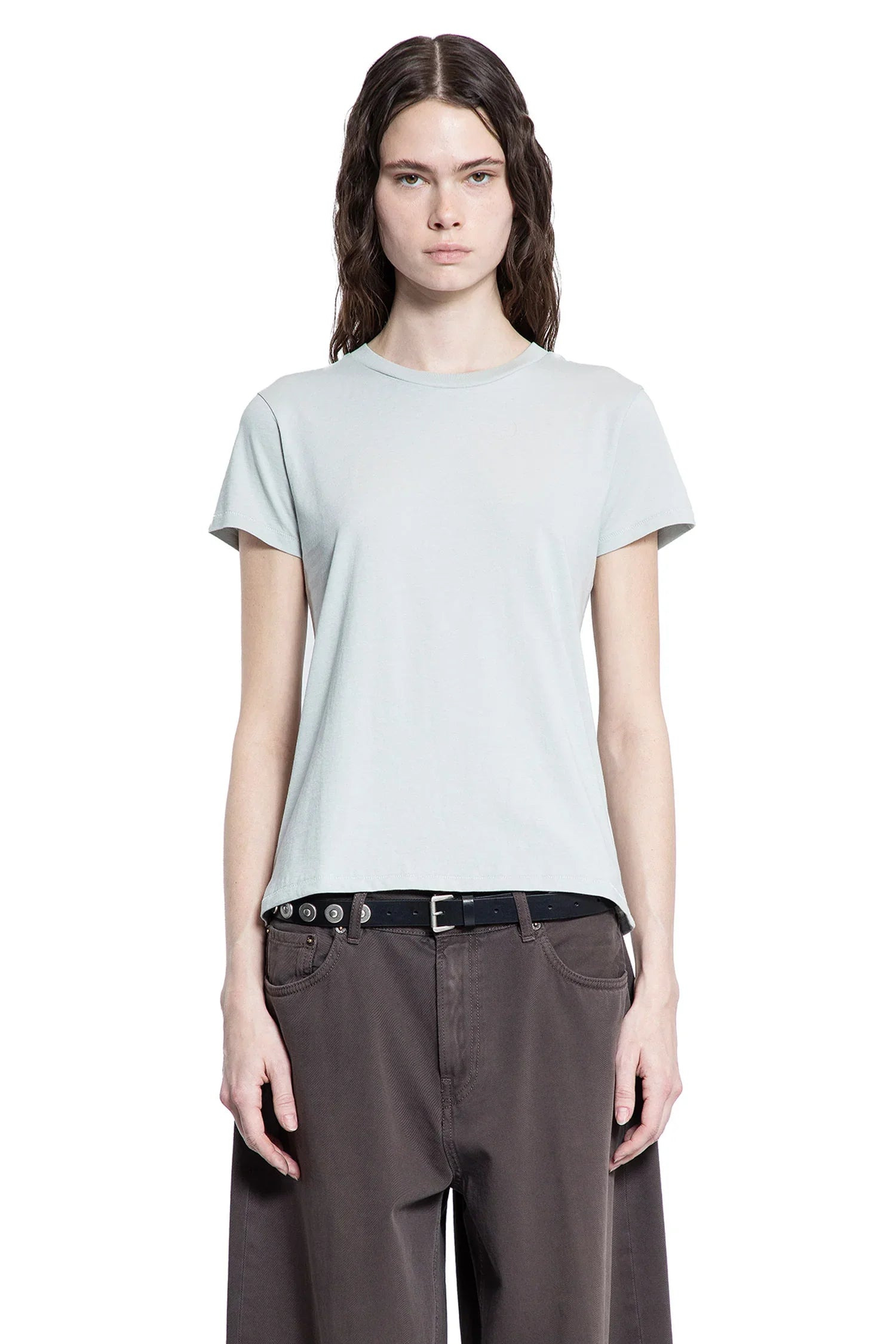 DESCRIPTION - Seaglass - Cotton jersey - Round neck - Short cap sleeves - Shrunken fit DETAILS - Made in: Peru - Composition: 100% Cotton - Model code: NT026C SEA - Item ID: 9517198836054 SIZE & FIT Model wears size S Model Height 181 cm Bust 83 cm Waist 57 cm Hips 88 cm