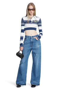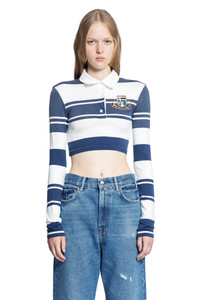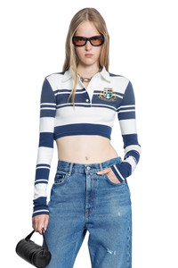 DESCRIPTION - Multicolor - Navy/white - Faded striped cotton jersey - Collar - Quarter-button closure - Chest varsity logo embroidery - Long sleeves - Cropped hem - Fitted DETAILS - Made in: Portugal - Composition: 98% Cotton 2% Elastane - Model code: FNWNTSHI000757 BL1 - Item ID: 9710055752022