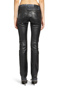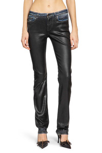 DESCRIPTION - The Acne Studios 2013F Charcoal Leather Roots channels the brand s cool precision—denim pushed toward something sharper, almost synthetic. The black coated finish gives it that familiar Acne tension between raw and polished, while the high rise and long, tapered line create a silhouette that feels deliberately engineered. Classic five-pocket structure stays intact, but the attitude is future-leaning, minimal, and unmistakably Acne: denim as a clean, conceptual statement rather than a basic. - Black - Coated denim - High-waisted - Belt holes - Button closure - 5 pockets - Skinny fit - Elongated tapered leg DETAILS - Made in: Italy - Composition: 94% Cotton 5% Polyester 1% Elastane - Model code: A00567 900 - Item ID: 9988698440022