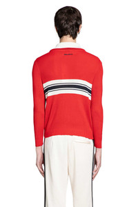 DESCRIPTION - In collaboration with wales bonner - Better scarlet - Ribbed acrylic knit - High-neck - Zip closure - Chest signature trefoil embroidery - Front and back stripe jacquard - Side pockets - Dropped shoulders - Ribbed hem and cuffs - Regular fit DETAILS - Composition: 100% Acrylic - Model code: KB2294 RED - Item ID: 9874653184342