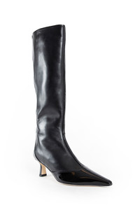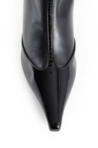 DESCRIPTION - Black - Nappa and patent leather - Front t-bar overlay - Pointed toe - Back zip closure - Slim kitten heel DETAILS - Made in: Italy - Composition: 80% Lambskin 20% Calfskin - Model code: A11KB0586019001225 BLK - Item ID: 9726049190230