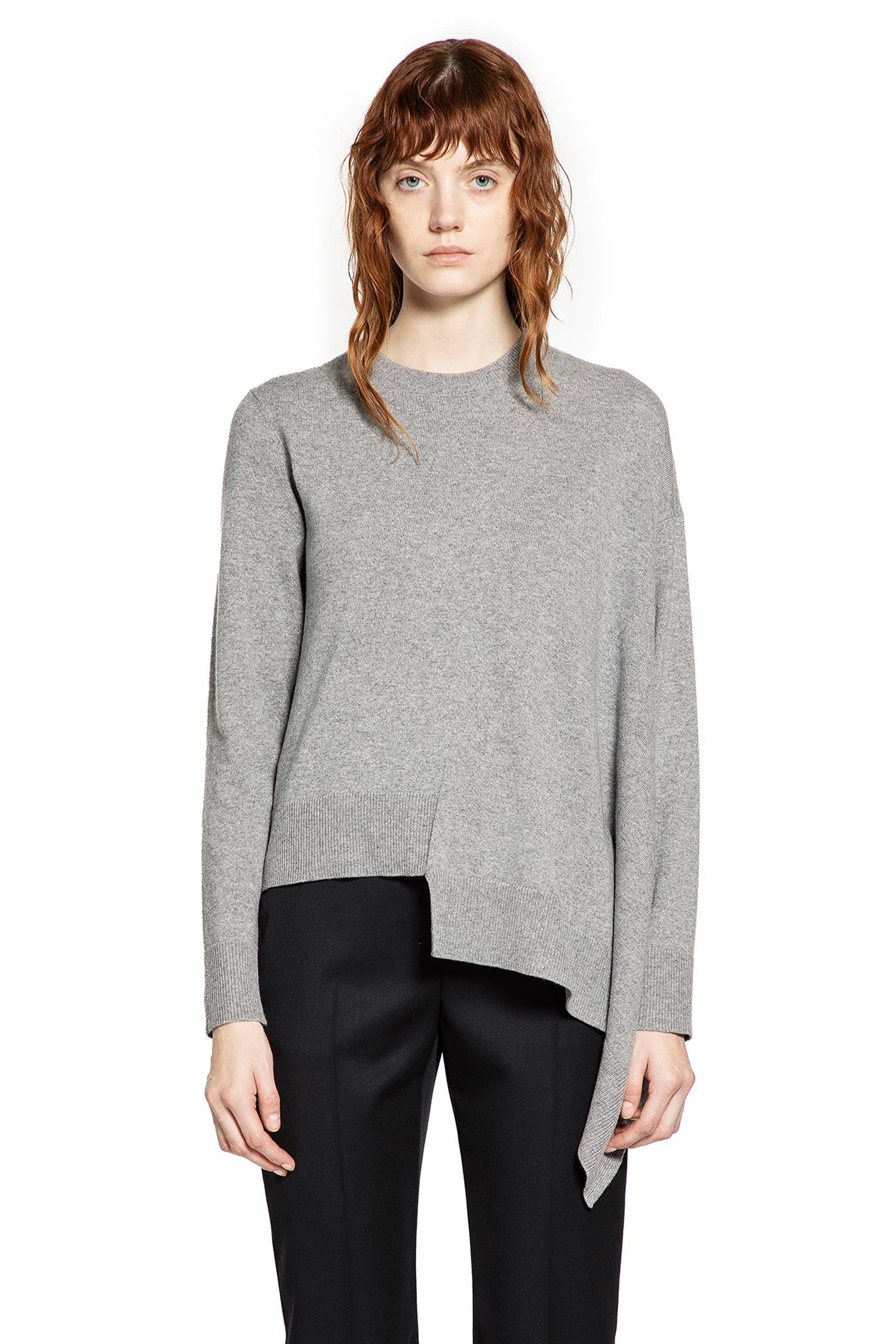 DESCRIPTION - Grey - Wool casmere knit - Crewneck - Dropped shoulders - Draped side panel - Ribbed hem and cuffs - Asymmetric hem DETAILS - Made in: Italy - Composition: 97% Cashmere 3% Wool - Model code: 839874Q1BEU 1020 - Item ID: 9799786758486