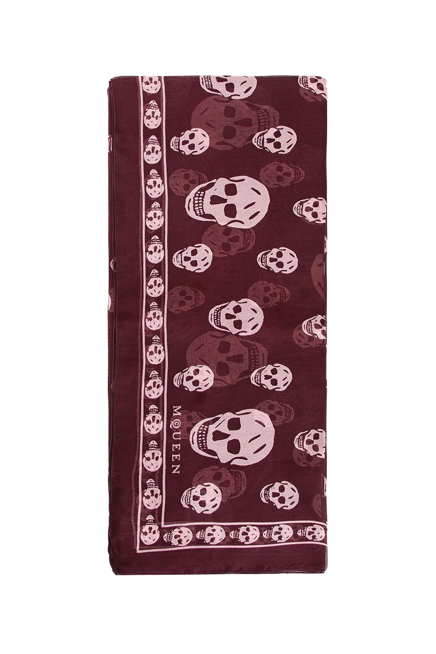 DESCRIPTION - Multicolor - Burgundy/pink - Silk chiffon - All-over skull motif - Skull border and logo - CA SKULL 104X120 DETAILS - Made in: Italy - Composition: 100% Silk - Model code: 8078893052Q 6172 - Item ID: 9328215064918