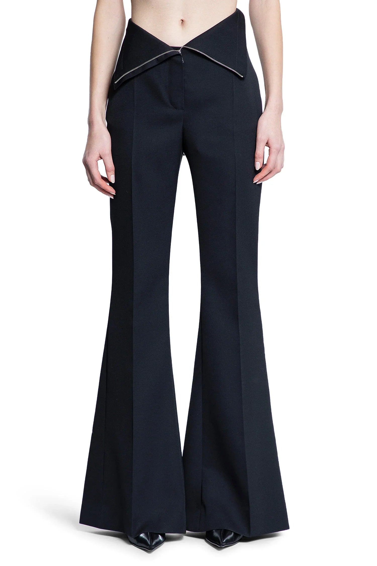 DESCRIPTION - Black - Wool crisp Japanese tailoring - High-waisted - Fold-over waist - Leg crease - Zip closure - Side pockets - Back buttoned pocket - Flared hems - Floor length DETAILS - Made in: Italy - Composition: 100% Wool - Model code: 810352QJADA 1000 - Item ID: 9337818153302 SIZE & FIT Model wears size 40 Model Height 178 cm Bust 85 cm Waist 73 cm Hips 92 cm