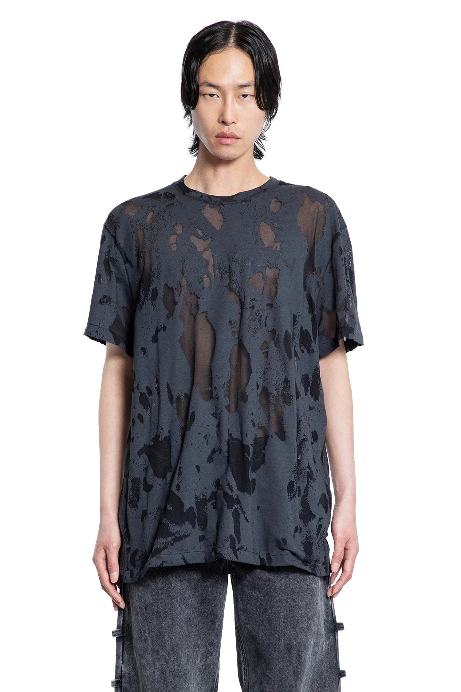 DESCRIPTION - Charcoal - Devore cotton jersey - Front flocked logo - Round neck - Dropped shoulders - Short sleeves - Relaxed fit DETAILS - Made in: Italy - Composition: 68% Cotton 32% Polyester - Model code: 828419QTADT 0571 - Item ID: 9614764048726 SIZE & FIT Model wears size S Model Height 188 cm Chest 88 cm Waist 69 cm Hips 88 cm