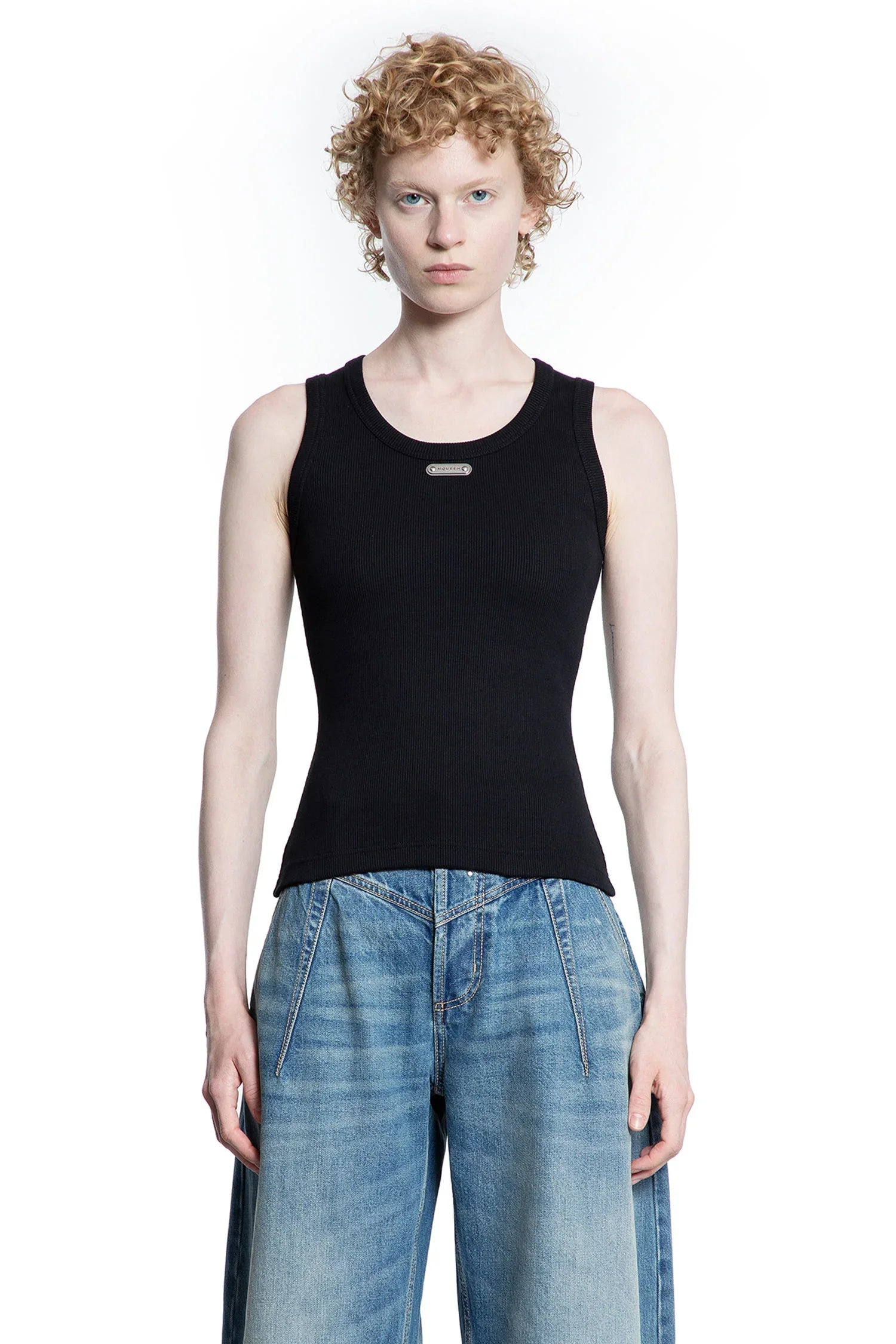 DESCRIPTION - Black - Scoop neck - Front engraved mcqueen placket - Sleeveless - Fitted DETAILS - Made in: Italy - Composition: 98% Cotton 2% Elastane - Model code: 839507QLAER 1000 - Item ID: 9658602783062 SIZE & FIT Model wears size 38 Model Height 180 cm Bust 82 cm Waist 58 cm Hips 90 cm