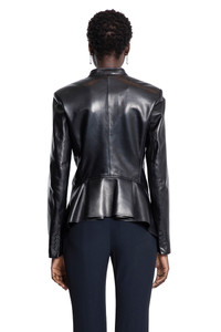 DESCRIPTION - Black - Soft leather - V-neck - Button closure - Chest pocket - Side flap pockets - Back asymmetric peplum hem - Fitted DETAILS - Made in: Italy - Composition: 100% Lambskin - Model code: 840138Q5AML 1000 - Item ID: 9689929253206 SIZE & FIT Model wears size 40 Model Height 180 cm Bust 77 cm Waist 57 cm Hips 97 cm