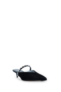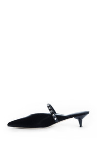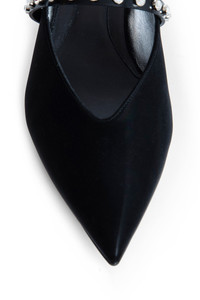 DESCRIPTION - Black - Nylon - Pointed toe - Front v-cut - Leather and crystal ankle strap - Kitten heel DETAILS - Made in: Italy - Composition: 72% Cotton 28% Polyurethane 100% Calfskin - Model code: 838130W4ABA 1067 - Item ID: 9676898402646