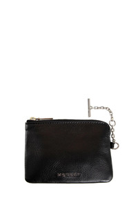 DESCRIPTION - balck - calfsin leather - 1central zip compartment - 2 card slots - metal lettering logo - shiny silver-finished chain - engraved metal cross-bar - zip closure DETAILS - Made in: Italy - Composition: 100% Calfskin - Model code: 8044351T1AN 1000 - Item ID: 9128459632982