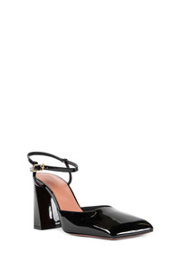 DESCRIPTION - CHARLOTTE PUMP PATENT BLACK + GOLD BUCKLE 95 MM BLOCK HEEL DETAILS - Made in: Italy - Composition: 100% Calfskin Lining: 100% Goatskin - Model code: CHARLOTTEPUMP PATENTBLACKGOLD - Item ID: 9922945614166