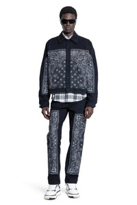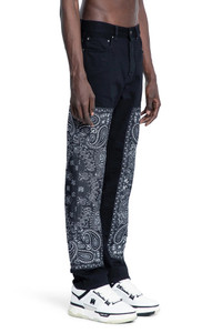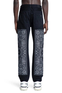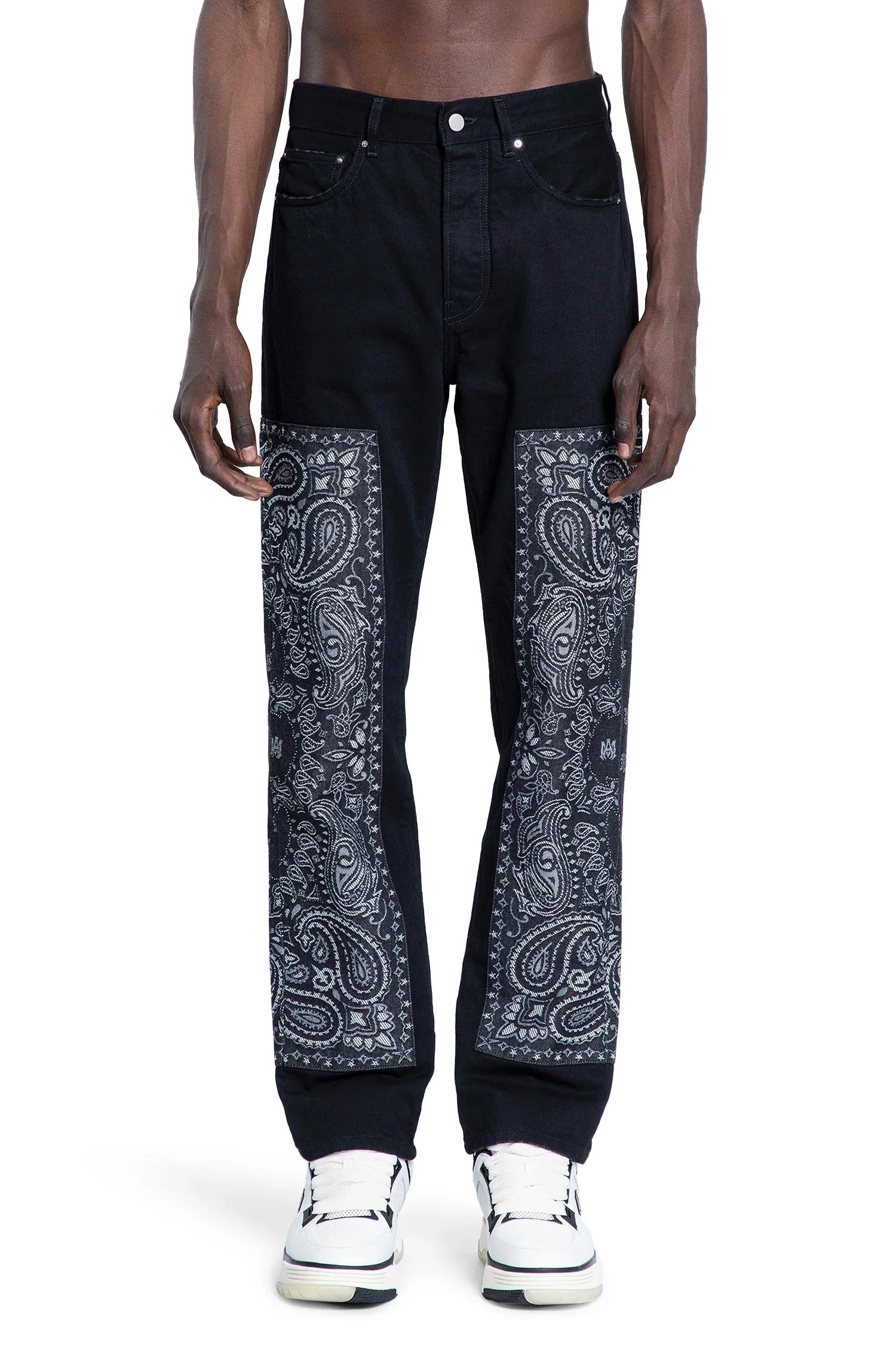 DESCRIPTION - Black - High-waisted - Belt holes - Button and zip closure - 5 pockets - Front and back bandana panels - Straight leg DETAILS - Made in: Italy - Composition: 100% Cotton - Model code: AMDNGH1060 BLACK - Item ID: 9386368598358 SIZE & FIT Model wears size 30 Model Height 190 cm Chest 87 cm Waist 73 cm Hips 88 cm