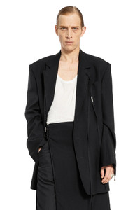 DESCRIPTION - Black - Viscose calico - Notch lapels - Padded shoulders - Removable signature grosgrain ribbon - Button closure - Chest pocket - Side flap pockets - Dropped shoulders - Slouched sleeves - Buttoned cuffs - Back split - Oversized fit - The fit of this item is oversize. If you prefer a narrow fit, consider purchasing this item two sizes down from your usual size. - The sleeves are intentionally long but can be shortened using an internal button. DETAILS - Made in: Italy - Composition: 100% Viscose - Model code: B0012470FA558 099 - Item ID: 9364463714646 SIZE & FIT Model wears size 48 Model Height 186 cm Chest 88 cm Waist 74 cm Hips 93 cm