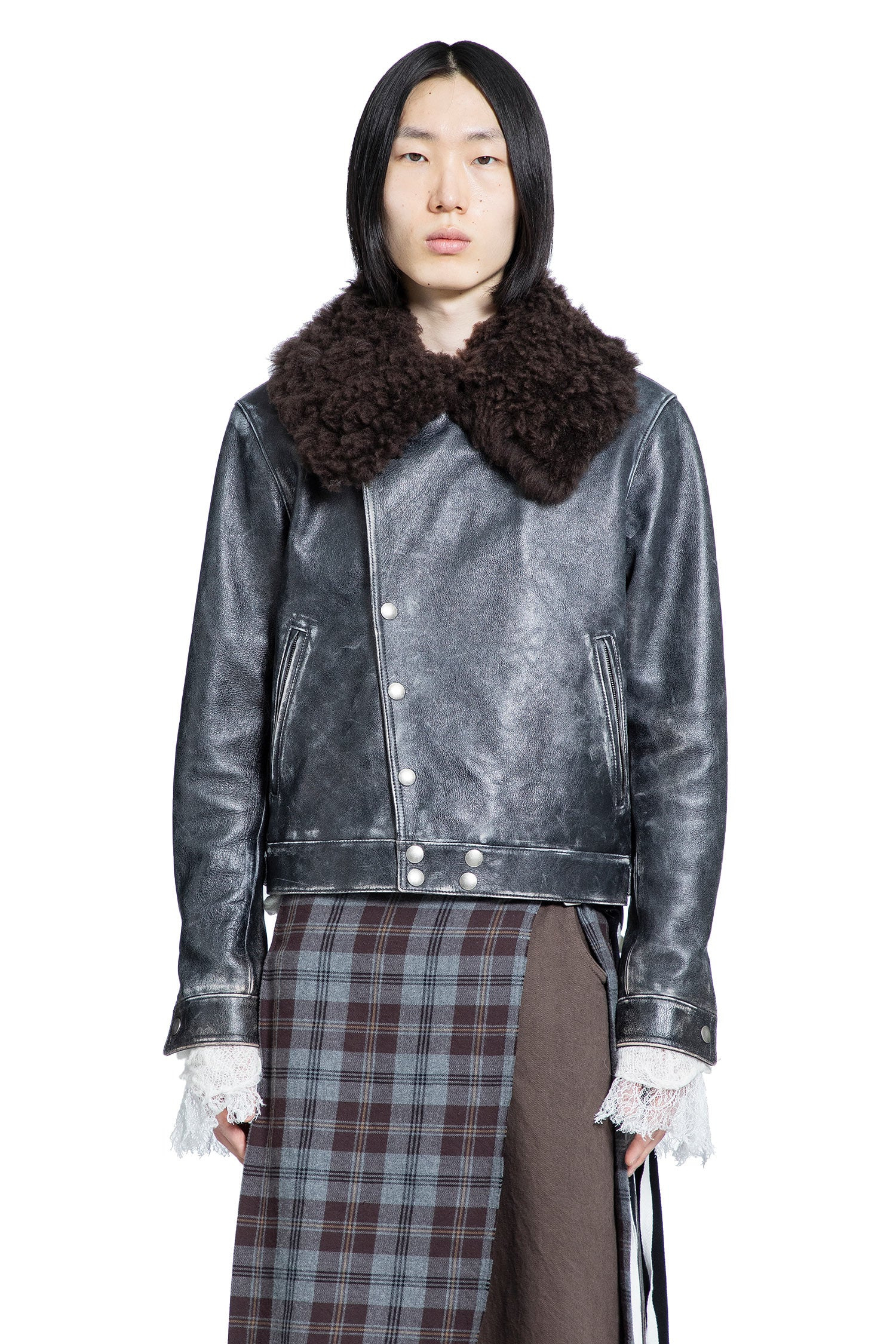 DESCRIPTION - Runway Style - Black - Distressed calfskin - Removable shearling collar - Asymmetric press stud and zip closure - Side zipped pockets - Dropped shoulders - Press stud cuffs - Back western shoulder panel - Back buckled waist straps - Boxy fit DETAILS - Made in: Italy - Composition: 100% Calfskin - Model code: B0013398LT169 D0093 - Item ID: 9846401237334