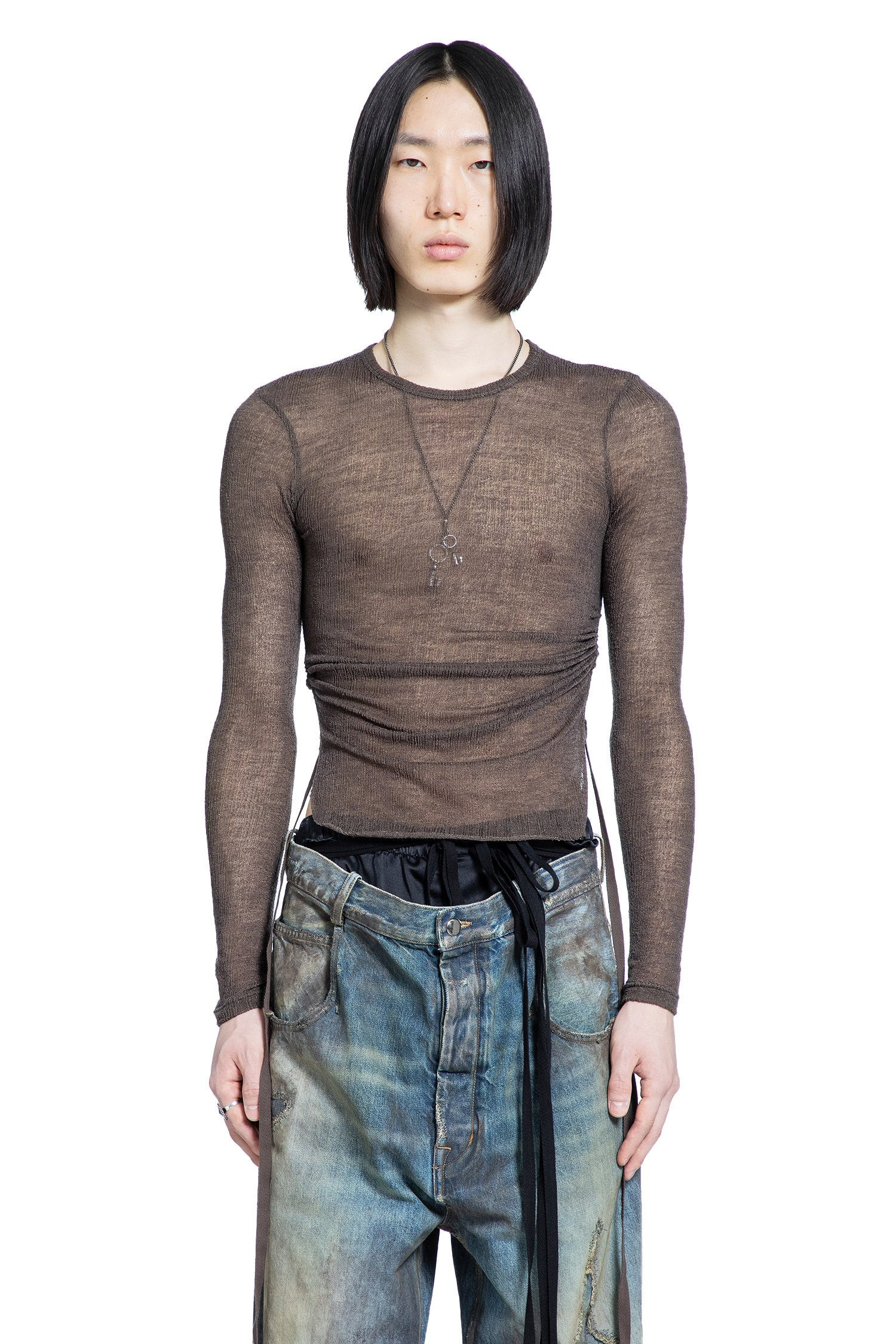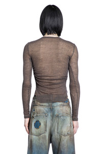 DESCRIPTION - Beaver - Sheer jacquard wool jersey - Round neck - Ruched - Long sleeves - Gathered sides - Side splits - Cropped raw-edge hem - Fitted DETAILS - Made in: Portugal - Composition: 80% Wool 20% Polyamide - Model code: B0012224FA619 060 - Item ID: 9796683104598