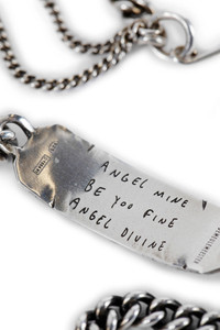 DESCRIPTION - Antique silver - Mixed link chain pendants - Fixed plaque with engraved logo and - ''angel mine - be you fine - angel divine'' - Pin closure - For pierced ears - Sold as pair DETAILS - Made in: Italy - Composition: 925 Sterling Silver - Model code: B0013097JW020 070 - Item ID: 9799596310870