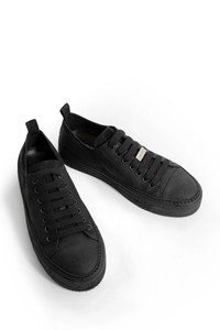 DESCRIPTION - Runway Style - Black - Painted Crosta Leather - Back Pull Tab - Lace Closure - Side Zip Closure - Covered Rubber Sole And Toe Cap - Ann Demeulemeester shoes embody the essence of luxury and comfort. The generously wide fit is a design choice aimed at ensuring a comfortable wear. For those who prefer a snugger fit, we recommend using an insole. Crafted from the highest quality leather, it is natural for the shoes to feel stiff initially. By wearing and walking in them, they will perfectly mold to the shape of your feet, offering unparalleled comfort. DETAILS - Made in: Italy - Composition: 100% Calfskin - Model code: B0010073LT012 099 - Item ID: 7558283493554