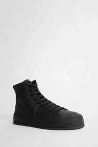 DESCRIPTION - Black - Painted Crosta Leather - High-Top - Back Pull Tab - Lace Closure - Side Zip Closure - Covered Rubber Sole And Toe Cap - Ann Demeulemeester shoes embody the essence of luxury and comfort. The generously wide fit is a design choice aimed at ensuring a comfortable wear. For those who prefer a snugger fit, we recommend using an insole. Crafted from the highest quality leather, it is natural for the shoes to feel stiff initially. By wearing and walking in them, they will perfectly mold to the shape of your feet, offering unparalleled comfort. DETAILS - Made in: Italy - Composition: 100% Calfskin - Model code: B0010100LT012 099 - Item ID: 7558287982770