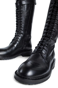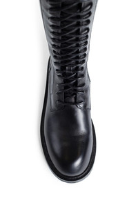 DESCRIPTION - Black - Santiago Leather - Adjustable and removable buckled strap - Lace-Up Closure - Side Zip Closure - Leather And Rubber Sole - Block Heel - Ann Demeulemeester shoes embody the essence of luxury and comfort. The generously wide fit is a design choice aimed at ensuring a comfortable wear. For those who prefer a snugger fit, we recommend using an insole. Crafted from the highest quality leather, it is natural for the shoes to feel stiff initially. By wearing and walking in them, they will perfectly mold to the shape of your feet, offering unparalleled comfort. DETAILS - Made in: Italy - Composition: 100% Calfskin - Model code: B0010063LT047 099 - Item ID: 7436615942322