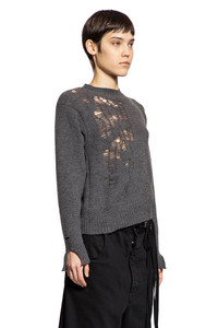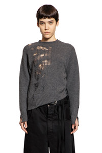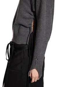 DESCRIPTION - Grey melange - Destroyed seed stitch knit - Crewneck - Dropped shoulders - Gathered side split with self-tie grosgrain straps - Cuff splits - Ribbed hem and cuffs - Asymmetric hem DETAILS - Made in: Italy - Composition: 100% Wool - Model code: B0013180KN071 088 - Item ID: 9680477520214