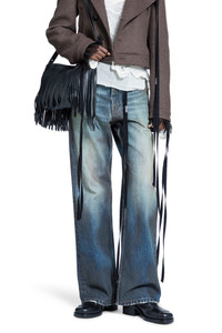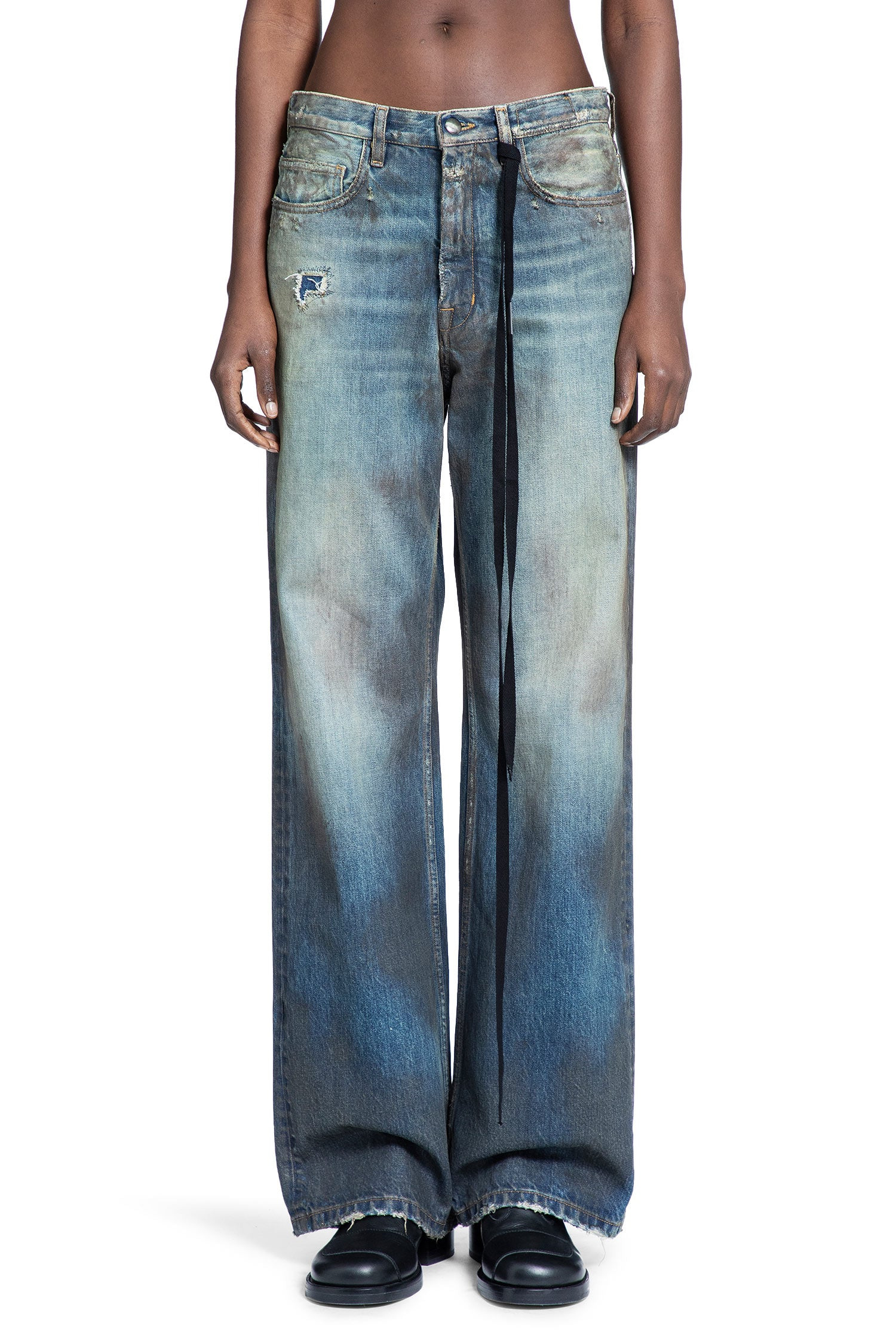 DESCRIPTION - Vintage blue - Dirtied distressed denim - Belt holes - Removable signature grosrain ribbon - Button closure - 5 pockets - Bootcut DETAILS - Made in: Italy - Composition: 100% Cotton - Model code: B0013624FA671 053 - Item ID: 9748361838934 SIZE & FIT Model wears size 40 Model Height 177 cm Bust 74 cm Waist 58 cm Hips 85 cm