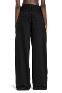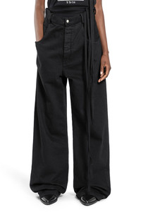 DESCRIPTION - Ann Demeulemeester women's black Kristel 5 pocket high comfort jeans - - black - - belt holes - - button closure - - 5 pockets - - adjustable ribbon belt - - oversized fit - - 100% cotton - - made in Italy - - Deliberately fits oversize for style purposes. for a regular fit, please consider taking a size down DETAILS - Made in: COUNTRY OF ORIGIN ITALY - Composition: 100% CO - Model code: B0010196FA038 099 - Item ID: 7427398402226 SIZE & FIT Model wears italian size 36 that deliberately fits oversize for style purposes. For a regular fit, please consider taking a size down Model height 177 cm bust 77 cm waist 58 cm