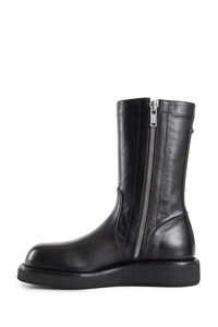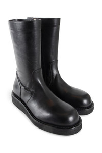 DESCRIPTION - Black - Grained shiny calfskin - Back signature rivet - Side zip closure - Leather and rubber sole DETAILS - Made in: Italy - Composition: 100% Cow Leather - Model code: B0013284LT141 099 - Item ID: 9689833734486