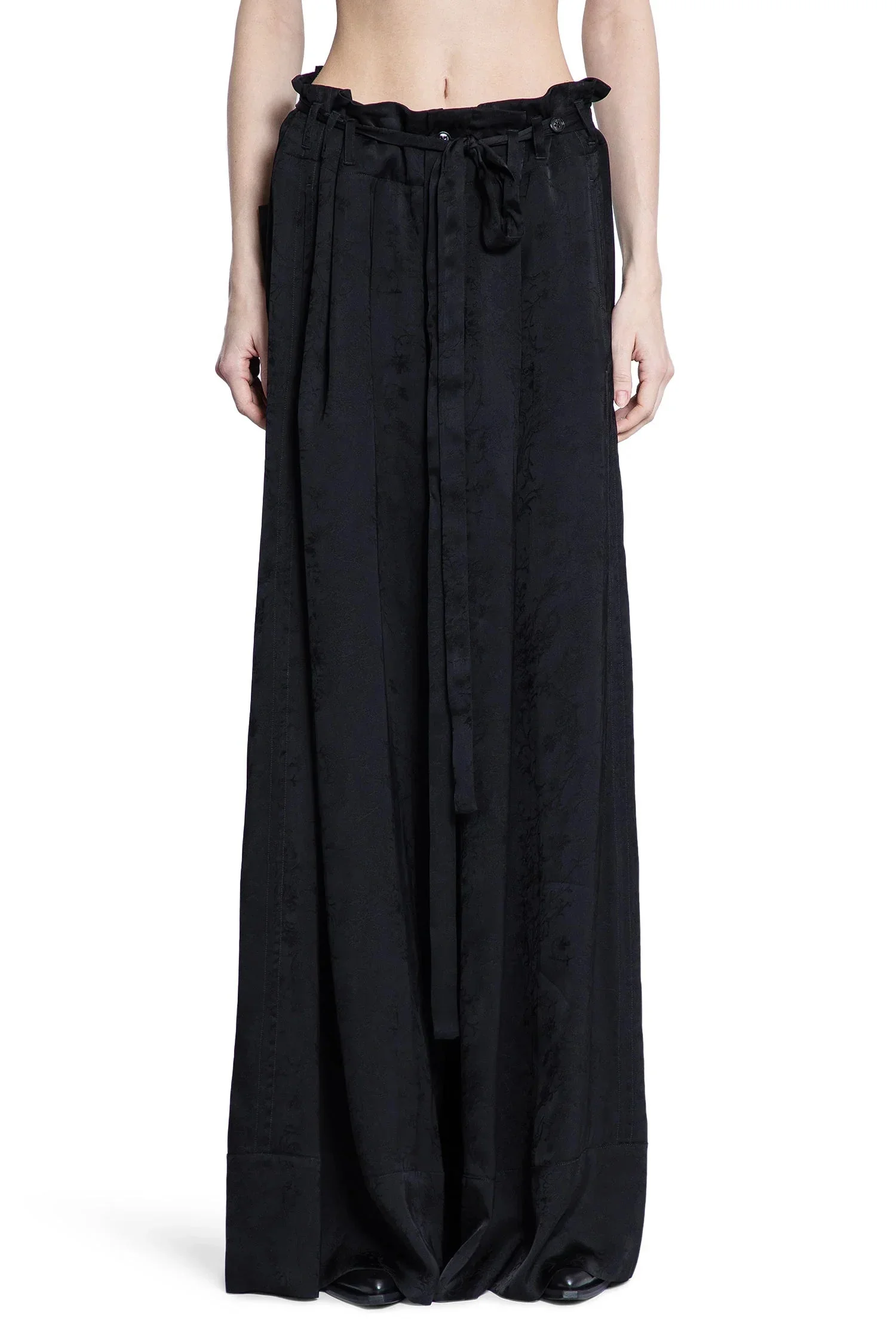 DESCRIPTION - Black - Ramage jacquard - Gathered drawstring waist - Side pockets - Back pockets - Wide leg - Draped - Loose fit DETAILS - Made in: Italy - Composition: 79% Viscose 21% Silk - Model code: B0012765FA611 099 - Item ID: 9517193462102 SIZE & FIT Model wears size S Model Height 181 cm Bust 83 cm Waist 57 cm Hips 88 cm